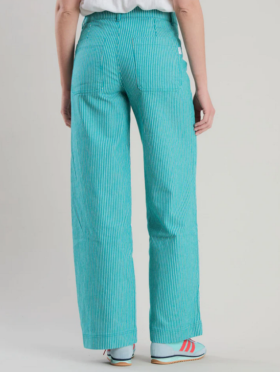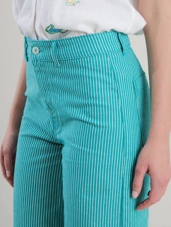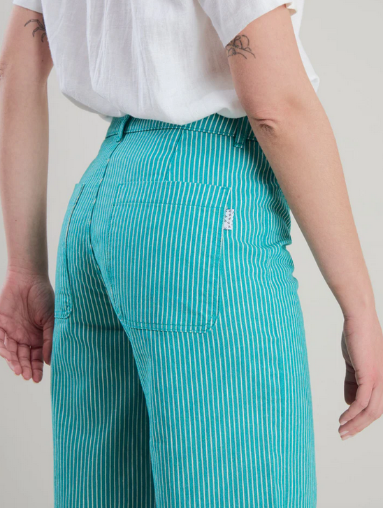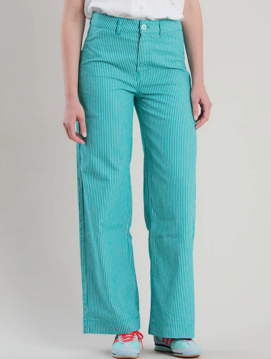 Warum sollte es im Sommer eine Einheitsfarbe sein? Warum nicht mal was neues ausprobieren? Wie wäre es mit einer Denim grün gestreiften Hose für dein neues Outfit diesen Sommer?
