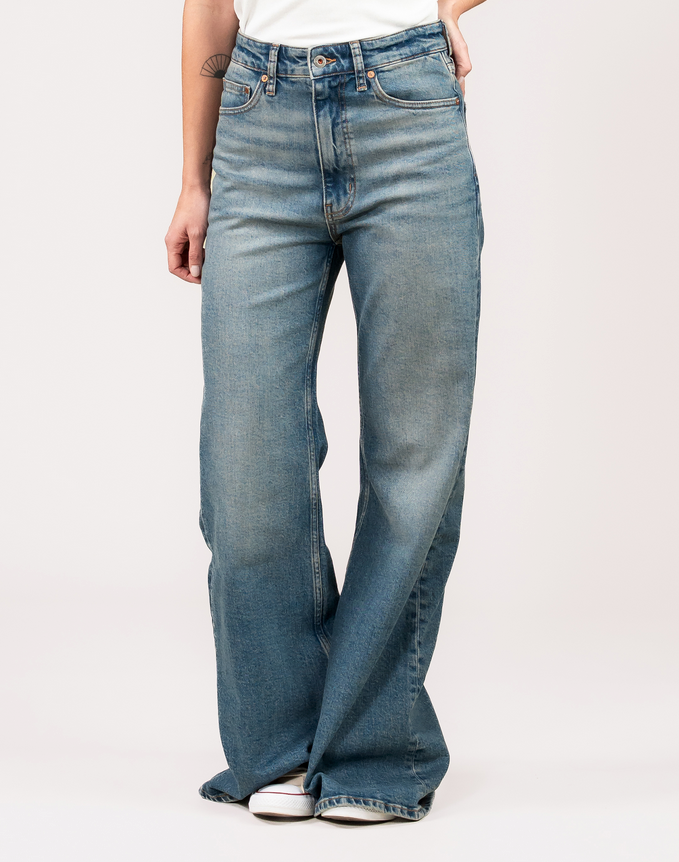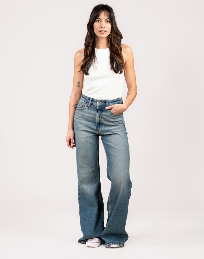 Die Vivienne Wide ist unsere auffälligste Damenjeans im Flare-Schnitt. Mit hoher Leibhöhe und weit ausgestellten Beinen ist diese Passform eine moderne Hommage an legendäre Denim-Modelle der Vergangenheit.